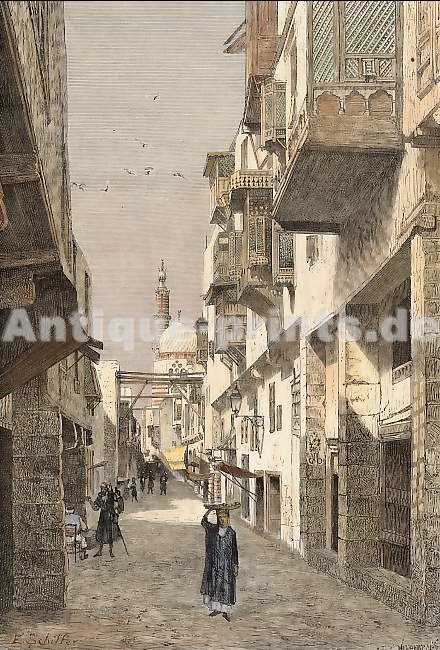 Aegypten. Stahlstich von R. Schifner nach A. Geyer. ca 1850. Sehr guter Zustand. Handkoloriert. 21x13cm. Mit Passepartout.