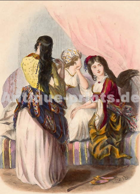 Orientalisme. Gravure sur acier, gravée par A. H. Payne d´après Vidal. ca 1850. Très bon état. Aquarellée à la main. 16,5x12,5cm. Montée sous passe-partout.