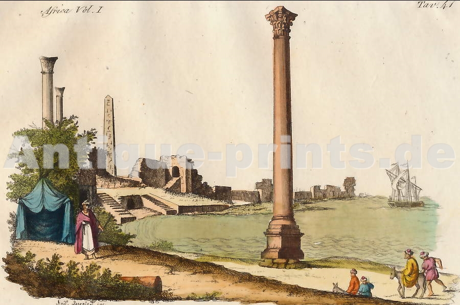 Égypte. Gravure sur acier, gravée par H. Winkles d´après G. Heck. 1849. Très bon état. Sans titre. Aquarellée à la main. 25x20cm. Montée sous passe-partout.