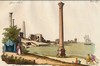 1. Pyramid in Lake Moeris, 2. Pyramids of Gizeh, 3. Section of a Pyramid at Memphis, 4. Pyramid at Assur in Nubia, 5. Colossi at Thebes, 6. The Sphinx of Gizeh, 7. Hall of the Palace at Carnak, 8. Entrance into the Palace at Luxor, 9. Propylaea on the Island of Philae.