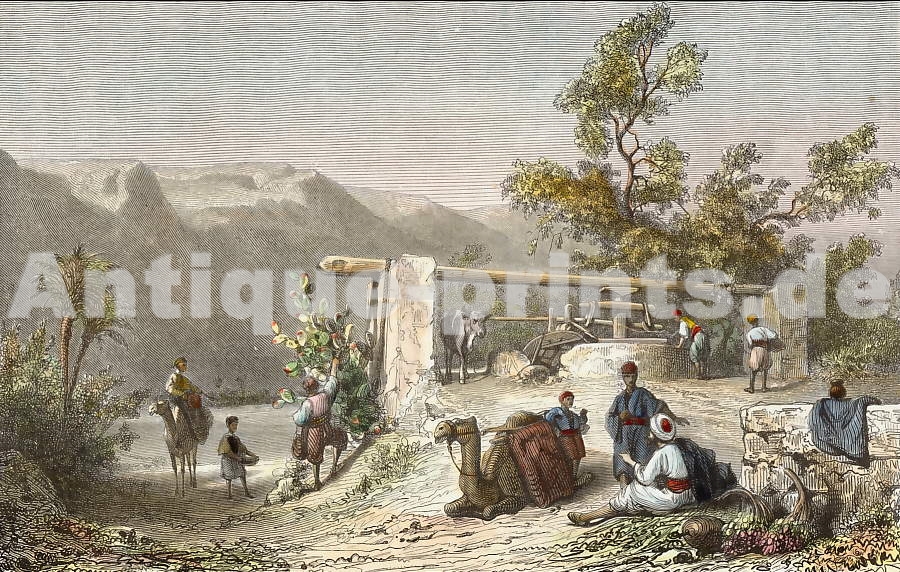Italy. Original steel engraving drawn by W. Turner, engraved by E. Finden. 1832. Hand-coloured. 9,5x5,5cm. Spot at the lower edge but very large margins. Matted.
