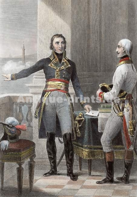 Militaria. Original steel engraving engraved by Pardinel after Champmartin. 1844. Very good condition. Hand-coloured. 14 x10cm. Mounted.