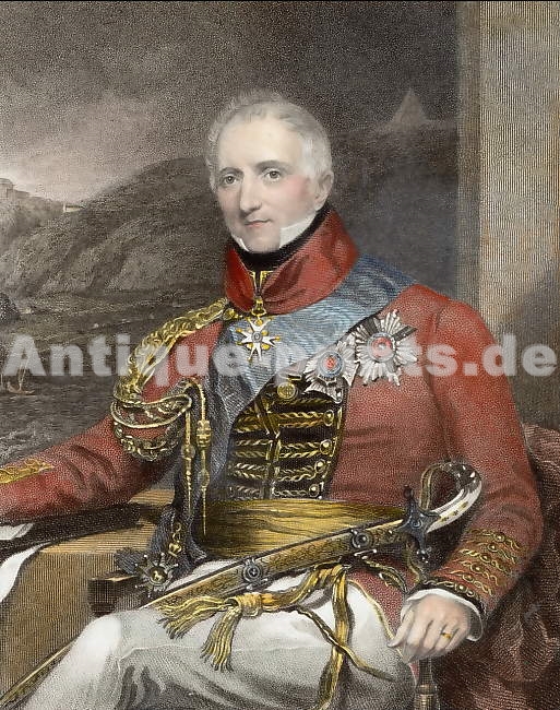 Militaria. Gravure sur acier, gravée par Hopwood. 1840. Très bon état. Aquarellée à la main. 10x10cm. Montée sous passe-partout.