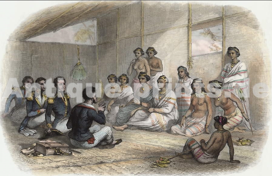 Tonga Islands. Original steel engraving, engraved by Masson after A. Rouargue. 1846. Very good condition. Hand-coloured. 17,5x11,5cm. Matted.