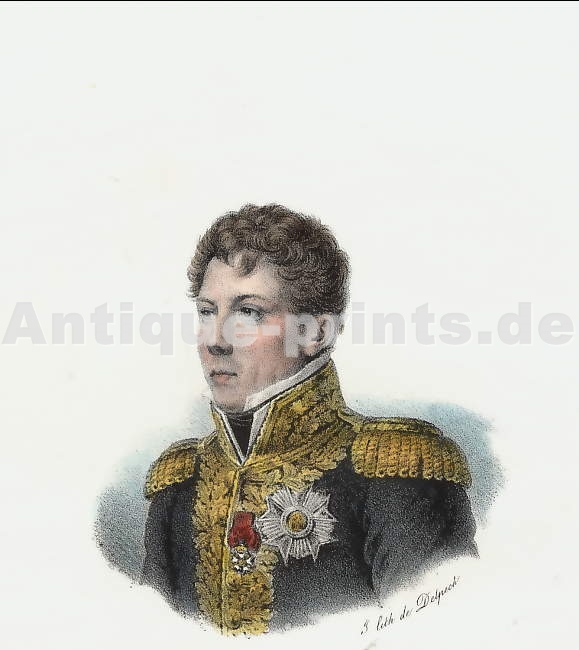Militaria. Original steel engraving engraved by A. Ethiou. 1839. Very good condition. Hand-coloured. ca 9x9,5cm. Matted.