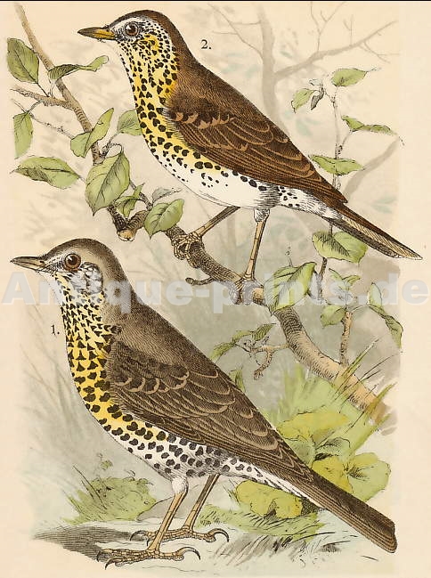 1. Wasser- oder Bergpieper (Water Pipit ; Anthus Spinoletta), 2. Wiesenpieper (Meadow Pipit ; Anthus Pratensis).