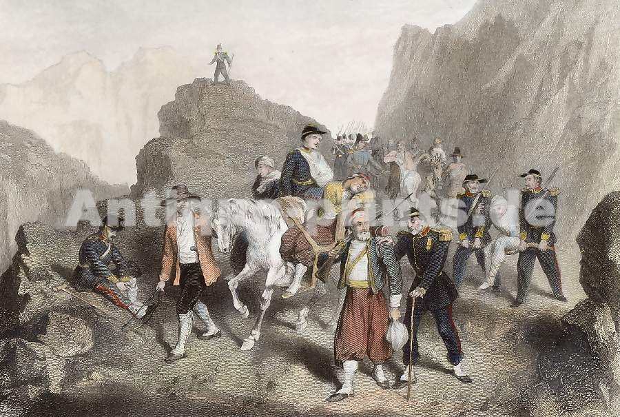 Ungarn. Stahlstich von Lemaître nach Vernier. 1842. Sehr guter Zustand. Handkoloriert. 14x9,5cm. Mit Passepartout.