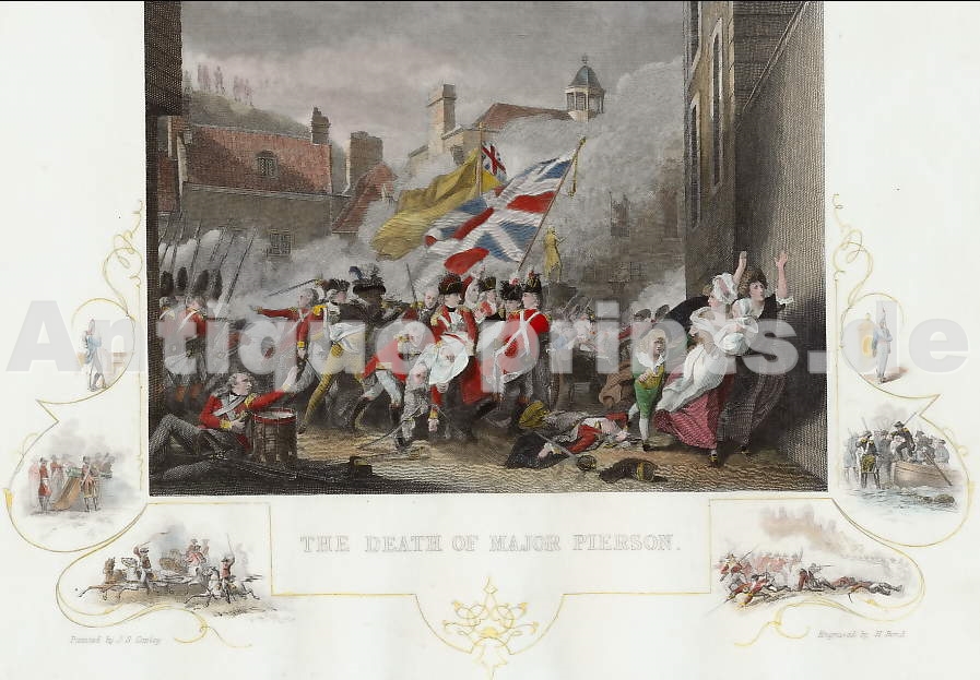 Netherlands. Original etching engraved by Marais after J. B. Wicar. 1789. Very good condition. Hand-coloured. 21x15cm. Matted.