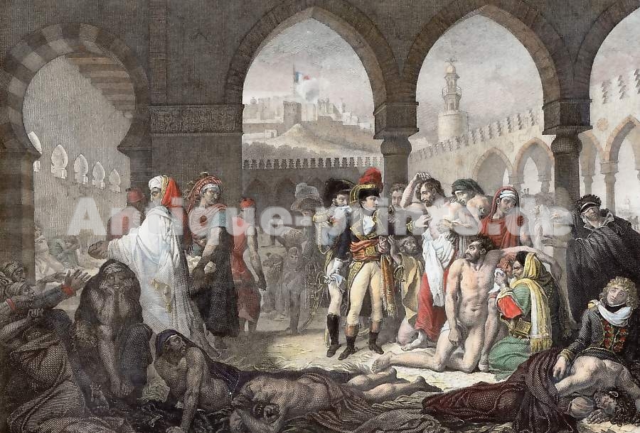 Varia. Gravure sur acier, gravée par W. French d´après David. ca 1850. Deux toutes petites taches d´encre dans le coin supérieur sinon bon état. Aquarellée à la main. 17x13,5cm. Montée sous passe-partout.