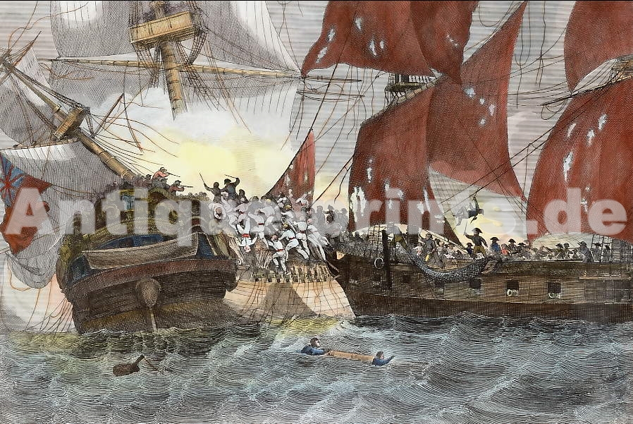 Russia. Original tinted lithograph by E. Ciceri after Admiral E. Paris, ships by A. Morel-Fatio. 1857. Slightly soiled in the margins. Hand-coloured. 46,5x30cm.