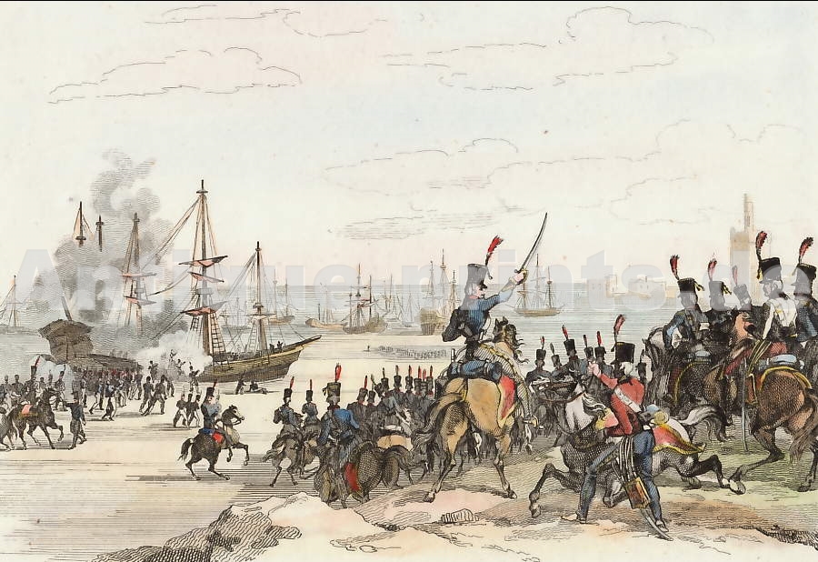 Militaria. Gravure sur acier, gravée par Beyer d´après Raffet. 1845. Très bon état. Aquarellée à la main. 13,5x10,5cm. Montée sous passe-partout.