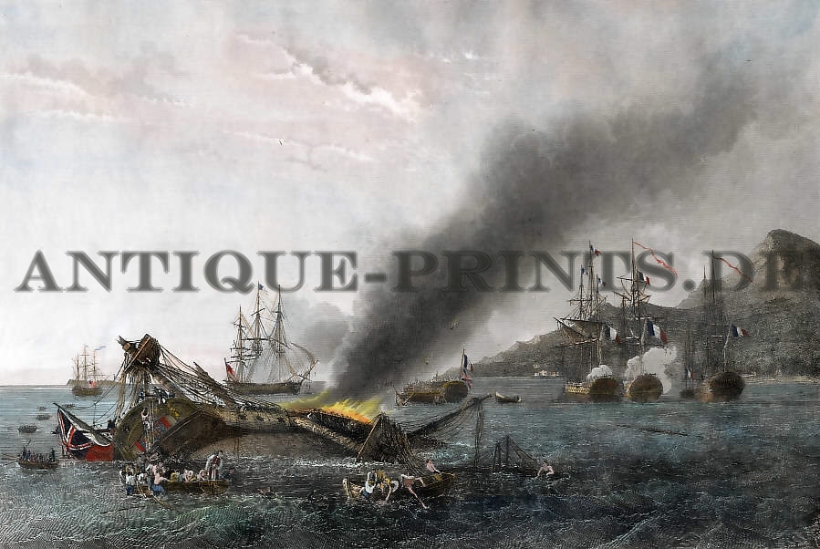 Angleterre, Gravure, England, Marine, Stich, Engraving, Maritime, Naval, France, Frankreich, Francia, Battle. Bataille Navale, Royaume-Uni, United Kingdom, île Maurice, Mauritius, Guy-Victor Duperré, Samuel Pym