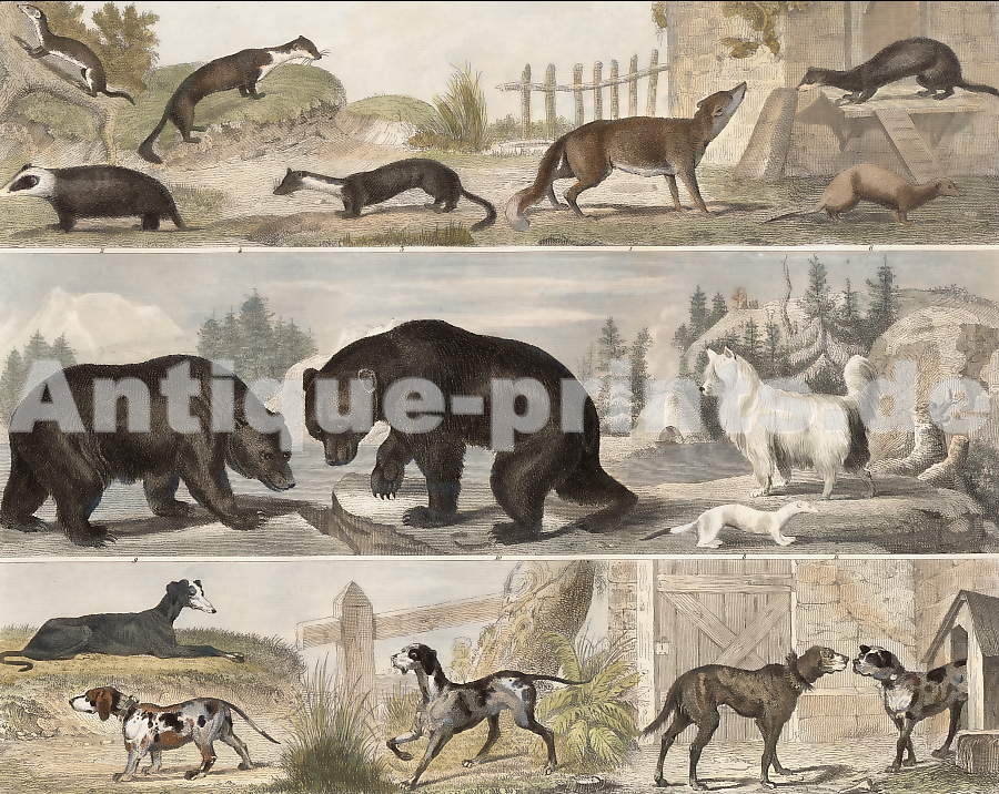 Plates, Engraving, Stiche, Gravure, Mammifères, Mammals, Canidés, Canine, Ours, Bear, Bär