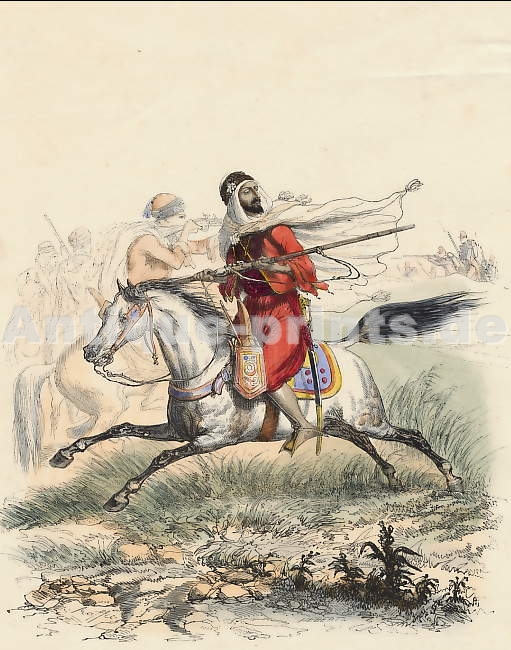 Holzstich von Hebert nach Raffet. 1843. Stockfleckig. Originale Handkolorierung. 12x12cm. Mit Passepartout.