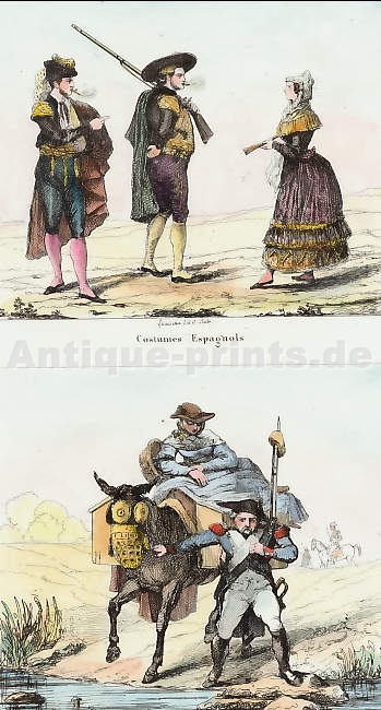 Espagne, Gravure, Spain, Stich, Engraving, Espana, Costumes, Trachten,