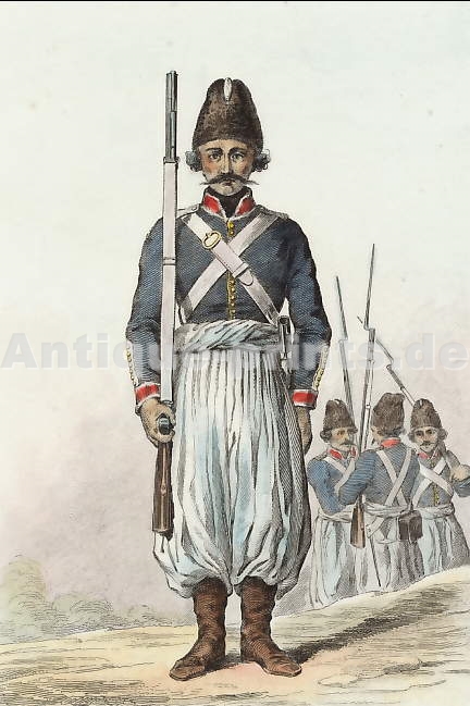 Bhutan. Original wood engraving drawn by Ronjat, engraved by Bertrand. 1889. Light foxing in the margins. Hand-coloured. 18,5x12,5cm. Matted.