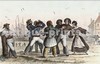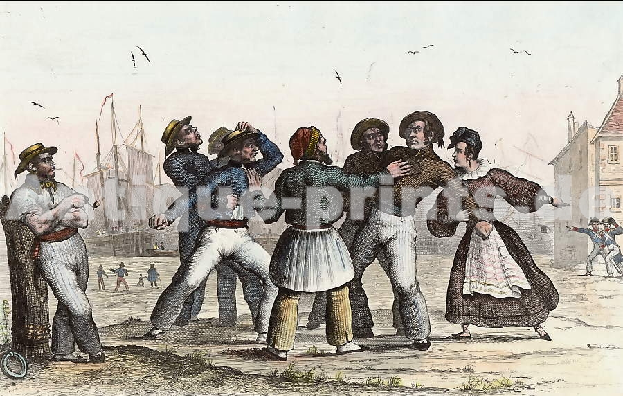 India. Original steel engraving by Lemaître (after W. Daniell). 1845. Very good condition. Hand-coloured. 14,5x9,5cm. Matted.