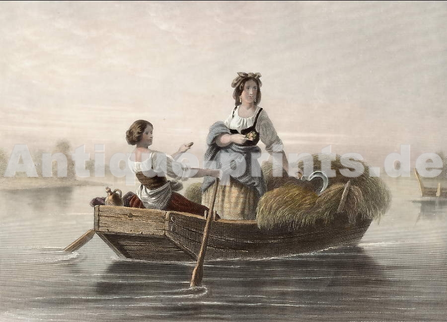 Genre. Original steel engraving engraved by A. H. Payne. ca 1840. Good condition. Modern hand-colouring. 15x11cm. Matted.