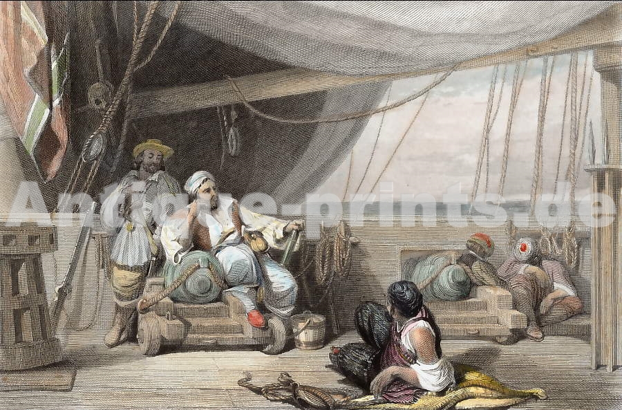 France. Original steel engraving, engraved by W. Miller after J. M. W. Turner. 1837. Very good condition. Hand-coloured. 13,5x9,5cm. Matted.