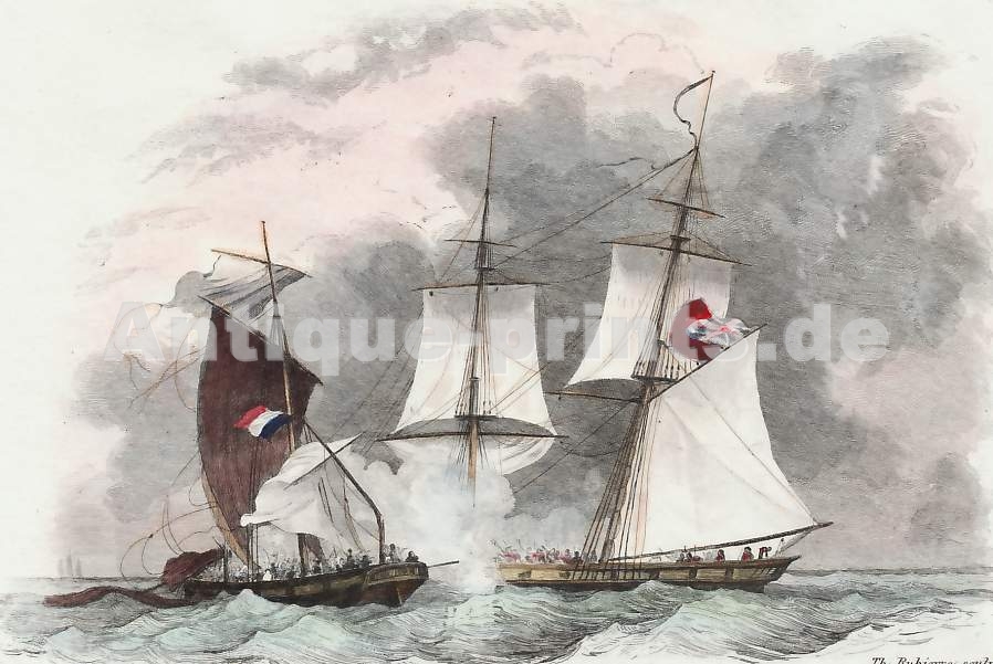Maritime. Original steel engraving drawn by St Aulaire, engraved by T. Ruhierre. 1837. Very good condition. Hand-coloured. 14,5x10,5cm. Mounted.