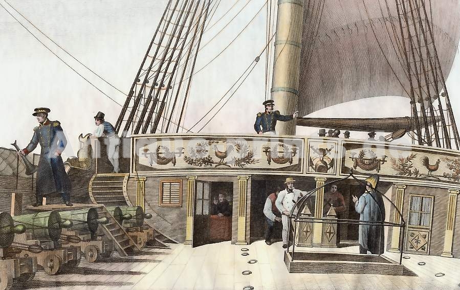Maritime. Original steel engraving engraved by Manceau after L. Garneray. 1837. Very good condition. Hand-coloured. 24x15cm. Mounted.