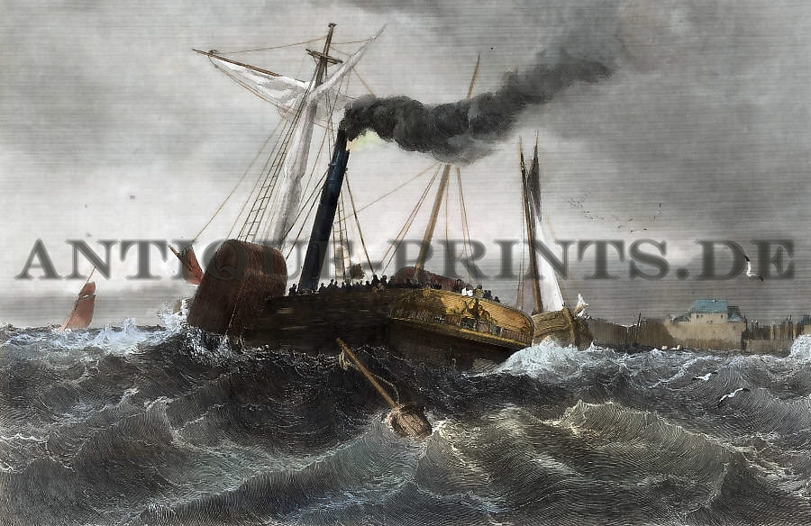 Maritime. Original steel engraving engraved by Manceau after L. Garneray. 1837. Very good condition. Hand-coloured. 24x15cm. Mounted.