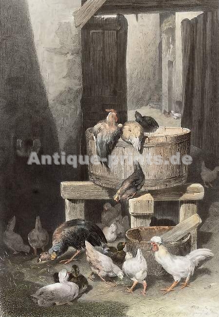 Genre. Original steel engraving engraved by W. French after E. Döpler. ca 1850. Very good condition. Decorative border. Hand-coloured. 21x14,5cm. Matted.