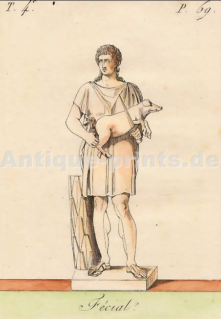 Ancient Rome. Original copper engraving drawn and engraved by Tommaso Piroli. 1804. Light foxing. Hand-coloured. 15,5x11cm. Matted.
