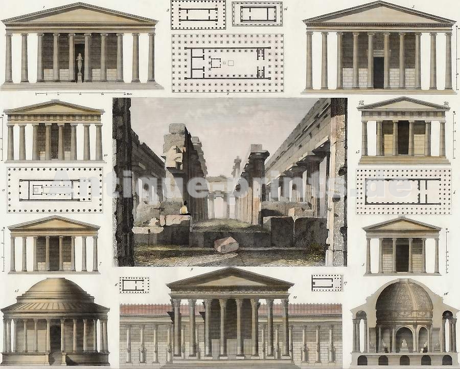 Pompéi. Gravure sur cuivre gravée par S. de Angelis d´après V. Campana. 1765. Très bon état. Aquarellée et gouachée à la main. 22x8cm. Montée sous passe-partout.