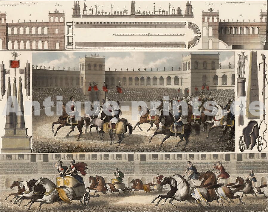 Rome Ancienne. Gravure sur acier, gravée par Danois d´après Demoraine. 1859. Très bon état. Aquarellée à la main. 15x9,5cm. Montée sous passe-partout.