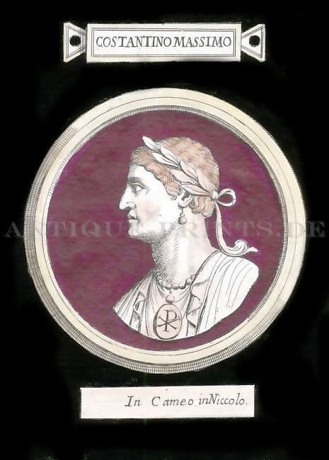 Herculanum. Gravure sur cuivre gravée par S. de Angelis d´après par N. Vanni. 1765. Bon état. Texte au verso. Aquarellée et gouachée à la main. 7,5x7cm. Montée sous passe-partout.