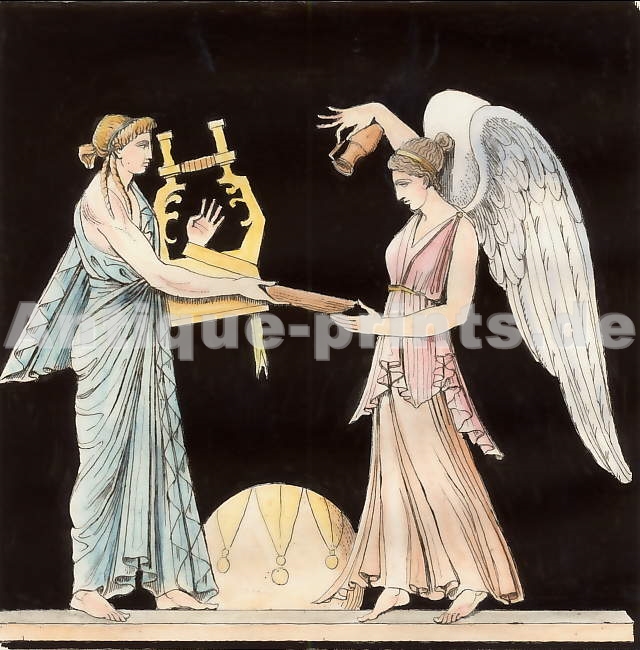 Altes Griechenland. Kupferstich gezeichnet und gestochen von Tommaso Piroli. 1804. Stockfleckig. Handkoloriert. 11x10,5cm. Mit Passepartout.