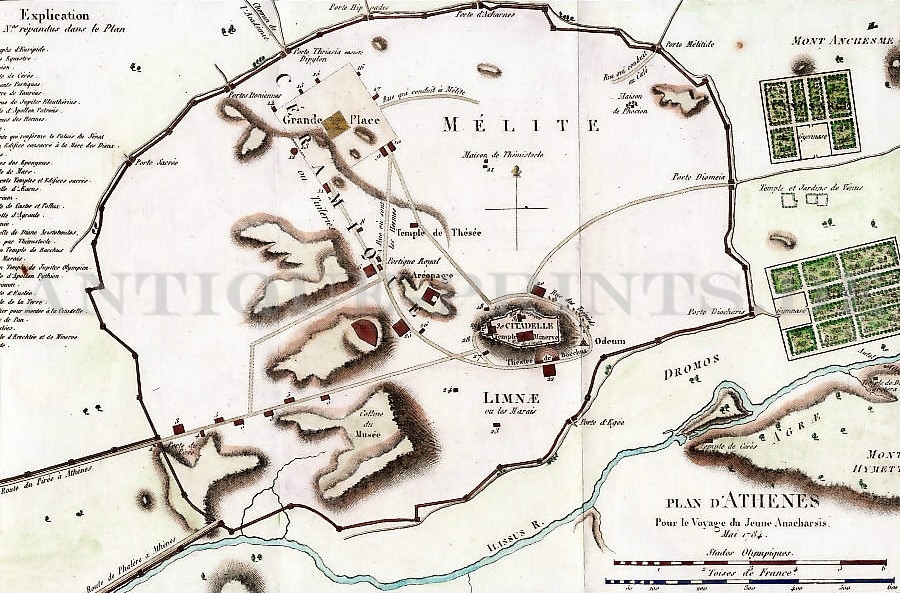 Grèce. Gravure sur acier, gravée par W. Wallis d´après W. H. Bartlett. 1836. Très bon état. Aquarellée à la main. 18,5x12cm. Montée sous passe-partout.