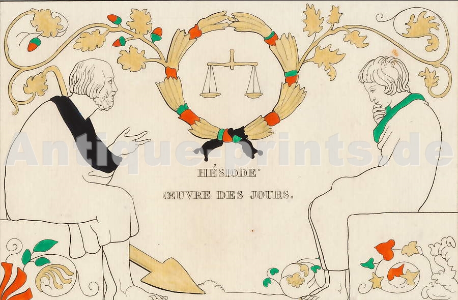 Mythologie. Gravure sur cuivre dessinée et gravée par Tommaso Piroli. 1804. Légères rousseurs. Aquarellée à la main. 16,5x10,5cm. Montée sous passe-partout.
