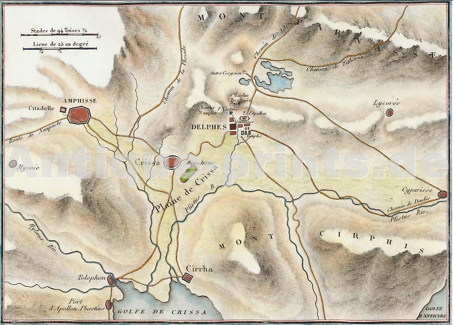 Carte, Stich, Map, Karte, Engraving, Greece, Grèce, Griechenland, Delphes, Delphi,