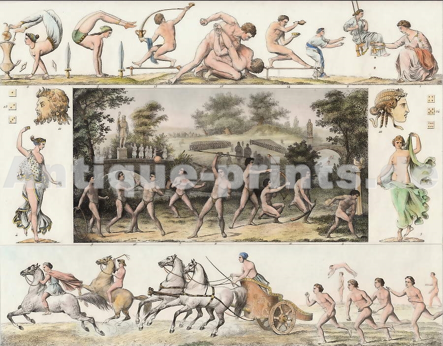Herculanum. Gravure sur cuivre, gravée par Filippo Morghen d´après Nicola Vanni. 1762. Très bon état. Sans titre. Aquarellée à la main (aquarelle et gouache). 36x19cm. Montée sous passe-partout.