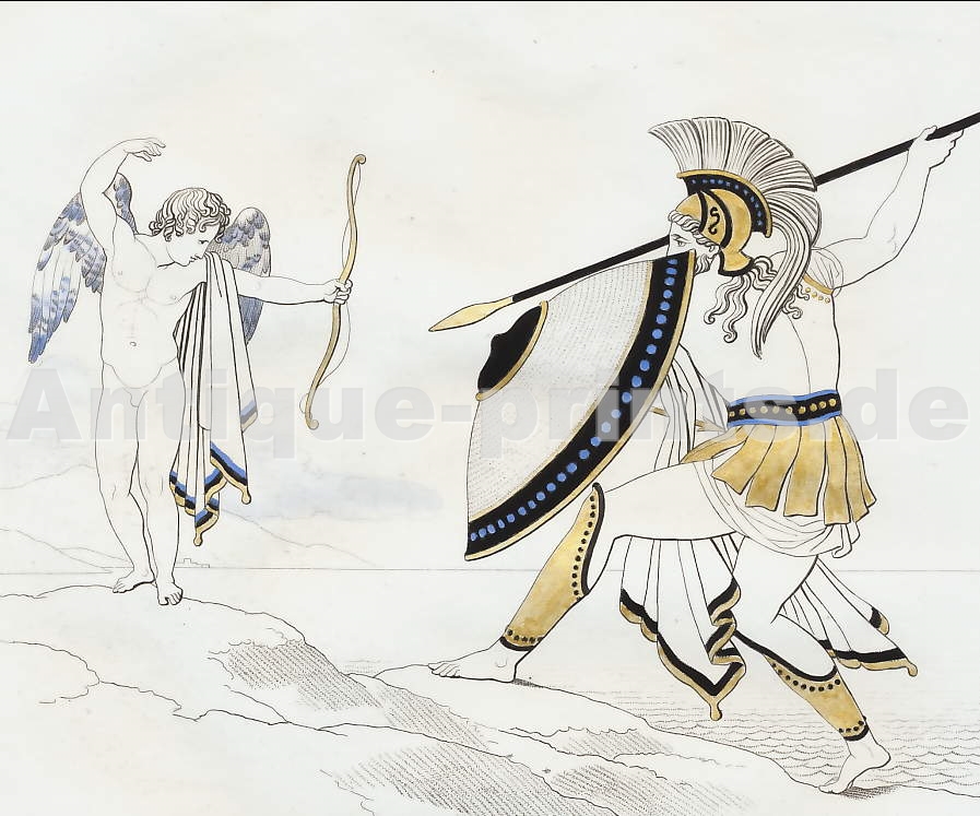 Mythologie. Eau-forte, gravée par Jean Duplessi-Bertaux, terminée par Marais, d´après Jean-Baptiste Wicar. 1789. Très bon état. Aquarellée à la main. 21x12,5cm. Montée sous passe-partout.