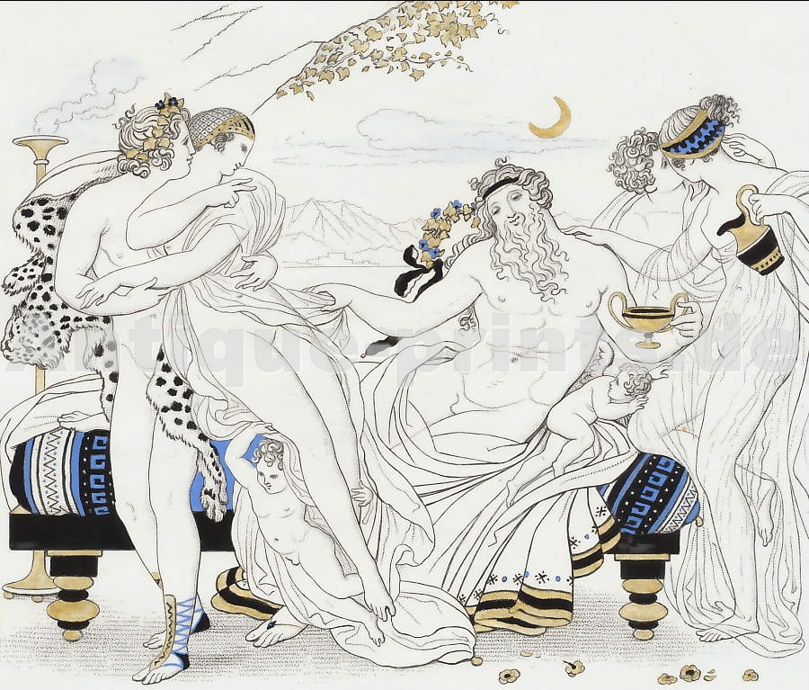 Grèce Ancienne. Gravure sur cuivre dessinée et gravée par Tommaso Piroli. 1804. Rousseurs. Aquarellée à la main. 15,5x11cm. Montée sous passe-partout.