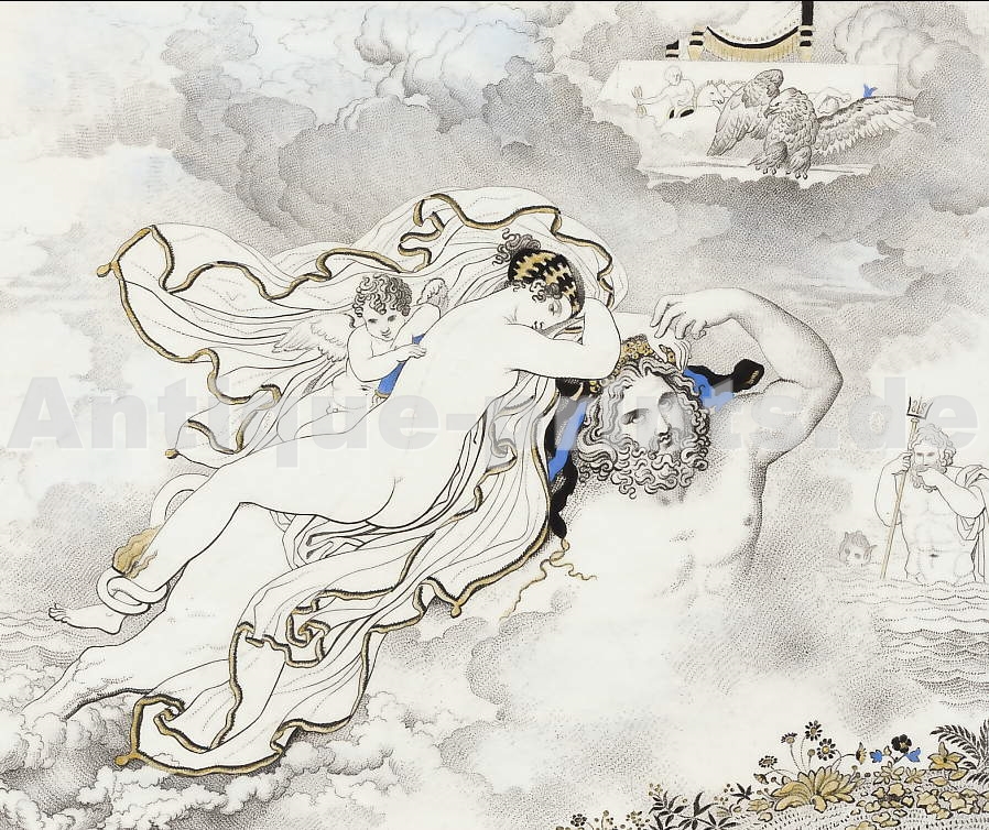 Mythologie. Gravure sur acier, gravée par A. H. Payne. ca 1850. Très bon état. Aquarellée à la main. 21x11cm. Montée sous passe-partout.