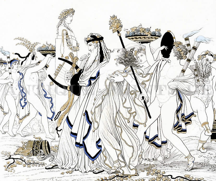 Grèce Ancienne. Gravure sur cuivre dessinée et gravée par Tommaso Piroli. 1804. Rousseurs. Aquarellée à la main. 15,5x10,5cm. Montée sous passe-partout.