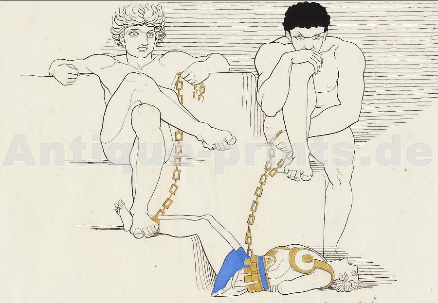 Ilias. Strichradierung von Feillet und Laqueson nach John Flaxman. 1827. Sehr guter Zustand. Handkoloriert. 24x16,5cm. Mit Passepartout.