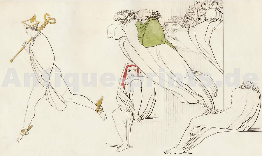 Mythologie. Stahlstich von W. French nach Lépicié. ca 1850. Sehr guter Zustand. Handkoloriert. 21x15cm. Mit Passepartout.
