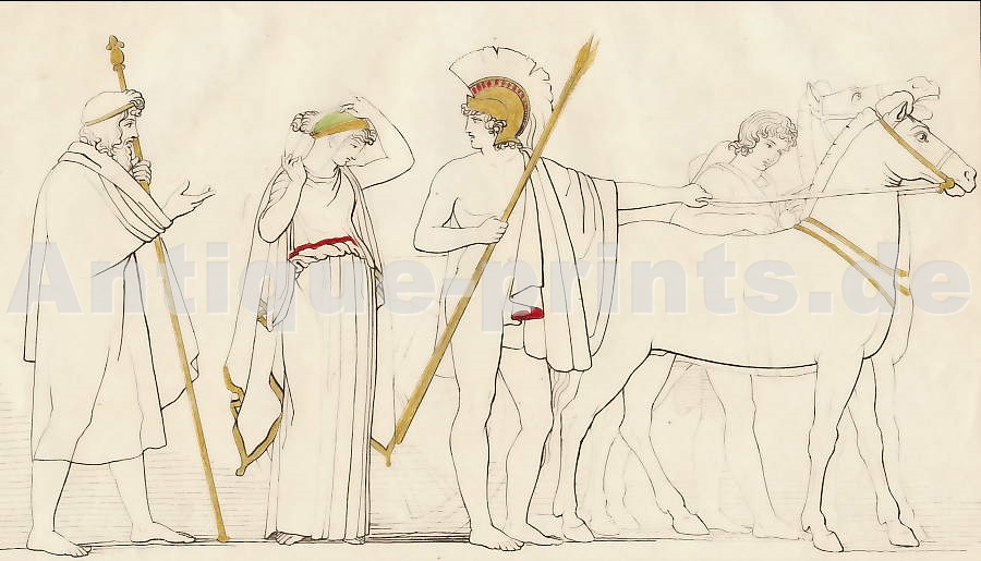 Odyssey. Original line etching, engraved by E. A. Réveil after John Flaxman. 1835. Very good condition. 18,5x12cm. Matted.