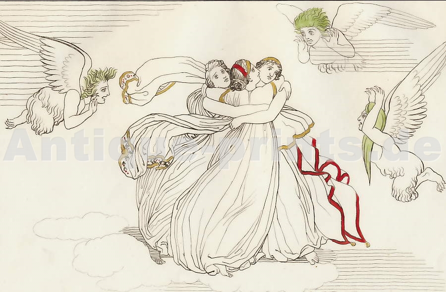 England. Original steel engraving. 1853. Very good condition. Decorative border. Hand-coloured. 12x10cm. Matted.