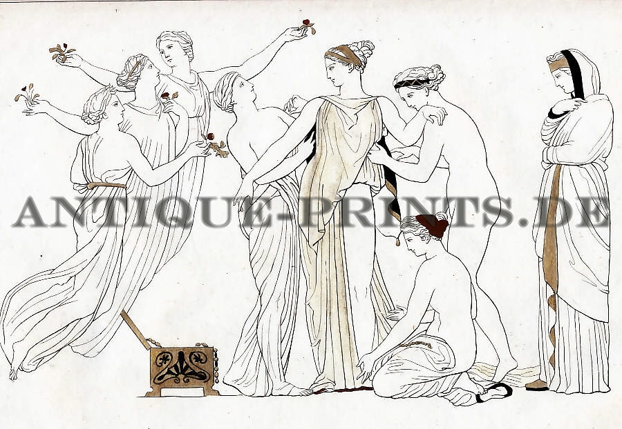 Odyssey. Original line etching, engraved by E. A. Réveil after John Flaxman. 1835. Very good condition. 21x11cm. Matted.