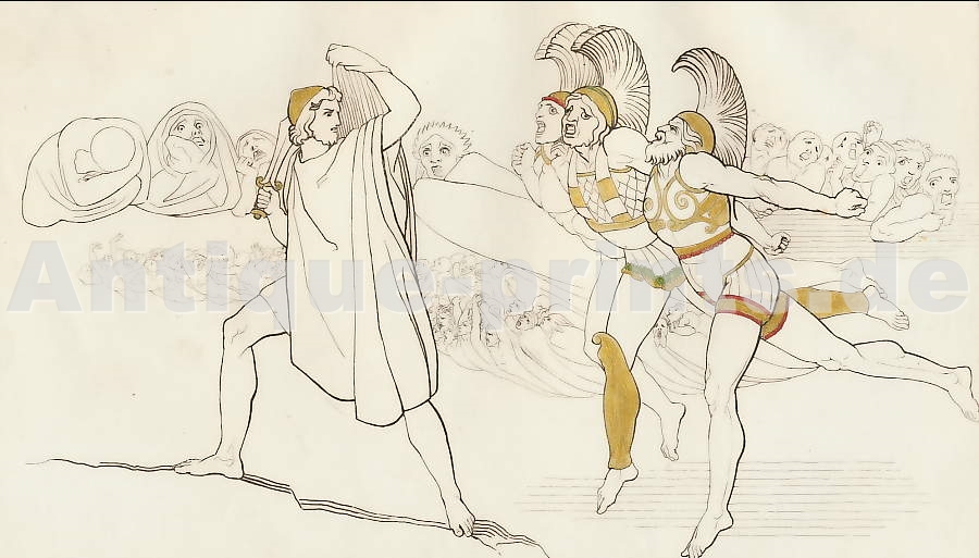 Iliad. Original line etching, engraved by E. A. Réveil after John Flaxman. 1833. Very good condition. 18x12cm. Matted.