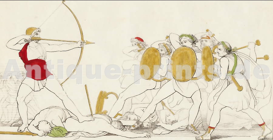 Iliad. Original line etching, engraved by E. A. Réveil after John Flaxman. 1833. Very good condition. 18x12cm. Matted.