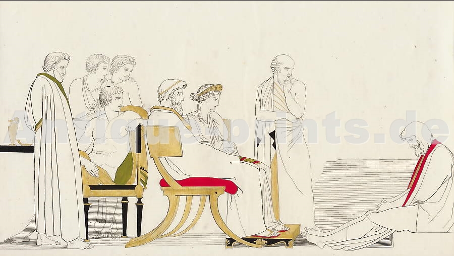 Mythology. Original copper engraving. 1821. Good condition. Hand-coloured (watercolour and gouache). 12x7,5cm. Matted.