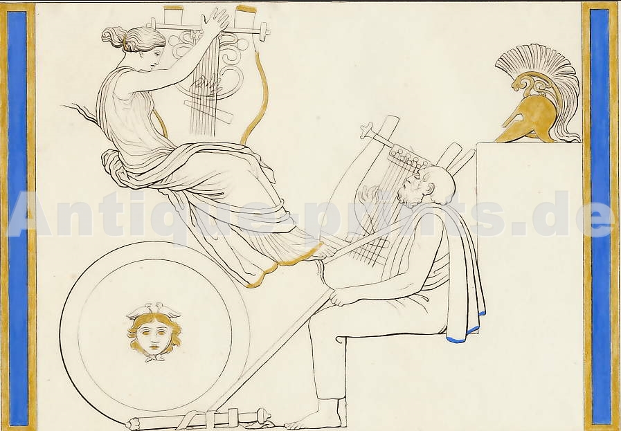 Mythologie. Eau-forte gravée par Forster d´après Vauthier. 1804. Légères rousseurs. Aquarellée à la main. 16,5x11cm. Montée sous passe-partout.