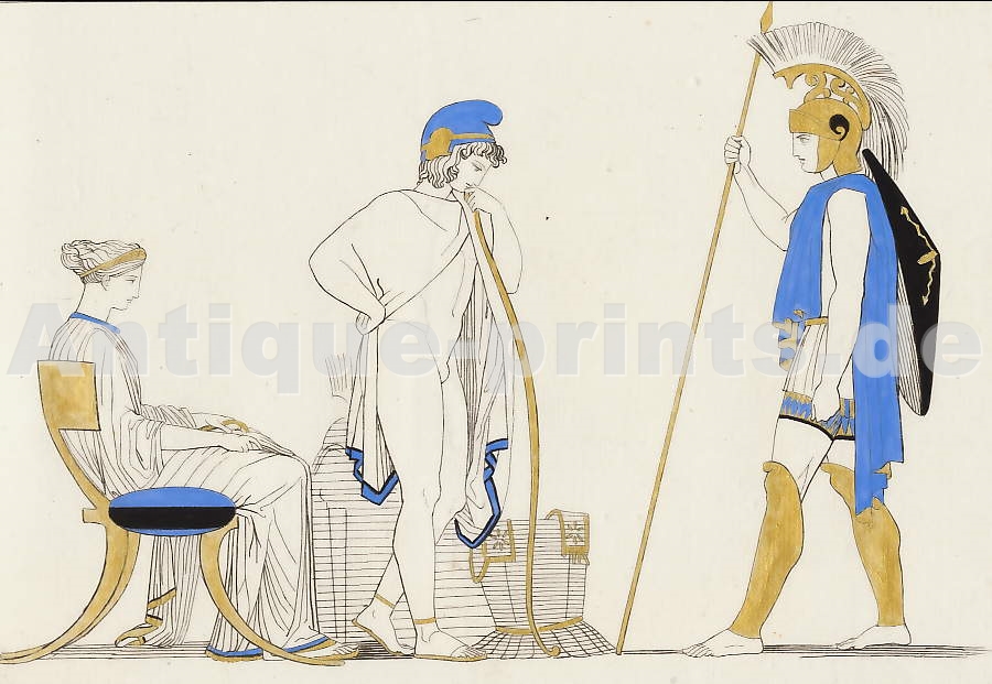 Grèce Ancienne. Gravure sur acier, gravée par A. H. Payne d´après after F. Trupp. ca 1850. Bon état. Aquarellée à la main. 16x7cm. Montée sous passe-partout.